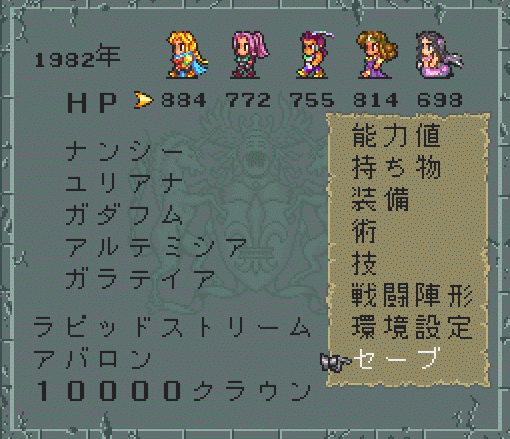 ナンシーって誰よ!!!ミリオンダラーじゃねーのかよ!どうやら最初のセーブミスで最終皇帝の名前が変わってしまった。ちっと残念。しかしまぁいいとしよう。最終メンバーを紹介する。