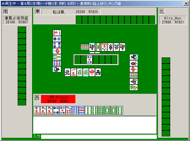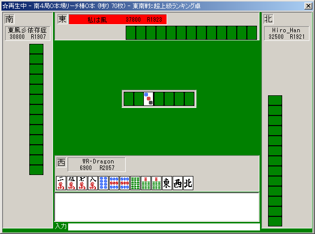 珍しく予約者ゼロの状態から予約して、やる気満々で半荘スタート。