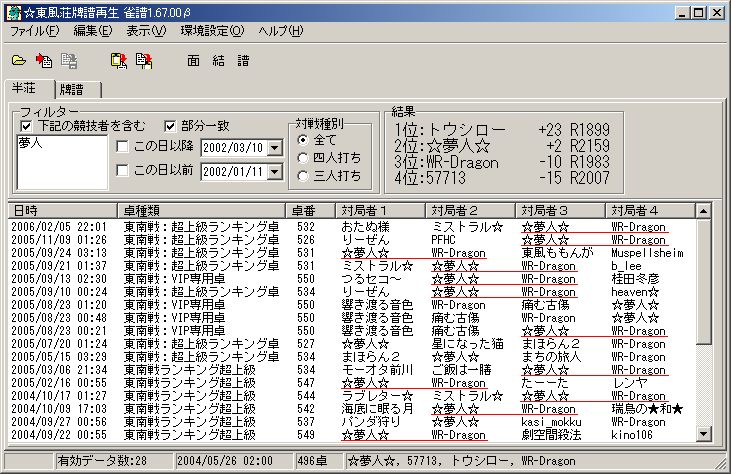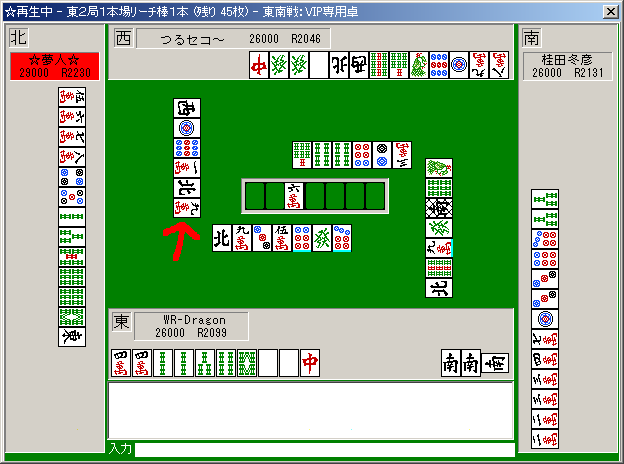 なんでこんな感覚を覚えるんだろうと少し気になったんで、ちょっと最近の夢さんとの対戦時の牌譜を見返してみた。