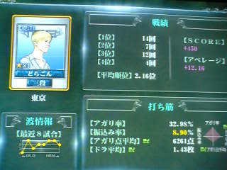 最近始めたMJ3の成績…と言えるほどの試合数もないけど。ちなみに全て東風戦です。