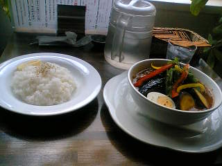 引き続き金銭感覚半崩壊中につき一番高い「チキンベジタブルスープカレー」を注文。しかも腹が減ってないのに「大盛り無料!」の誘惑に負けて