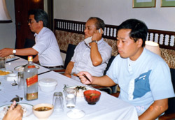| 宿泊ホテルからコーチン市街を望む | 造船所幹部夫妻と記念撮影 女性の纏うサリーから、カーストが見分け られるそうです。カースト制度がいまだに 廃止できないところがインドの矛盾です。 |