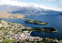 ![]() ゴンドラで海抜790mのボブス・ピー クに登ると、眼下にクイーンズタウン の街とワカティプ湖が広がる。 ここの展望レストランで夕食を摂る。 |