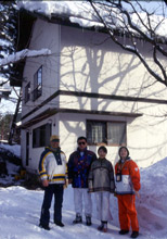 | 白馬三山をバックに記念撮影 | 準指導員Kamiさんのお手本の滑り |