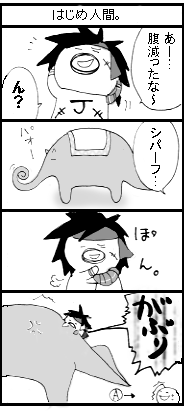 「虹色天球」のおかむに様からまたまた頂いたとっても楽しい四コマです。 チャットでの何気ないお強請りがひょんな事から実現したもの。元ネタは僭越ながらわたくしです。 えーっとですね、腹を空かしたジェクトがシパーフに噛みついたら面白いだろうなーっと、ぼんやり考えててこれは四コマにしたら面白いだろうなと思ったもの。だってさ、ジェクトだったら腹が減ったらたとえ相手がシパーフだろうがなんだろうが噛みつくんじゃなかろうかなと思ってね。 しかしその後シパーフの逆襲までは考えていなかったです。 おかむに様ったらナイスです。 めきめきされているジェクトを見て笑っているブラ様ったら、お素敵。 アロさんもいい味だしてるわ。 そ、そして野性味溢れるジェク様が最高です。やっぱりおかむに様のジェクトは私の理想です。 ああん、ジェクト大好き! |