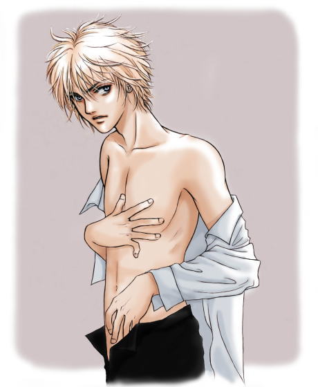 彼女を助けるとティーダは誓った。 あらぬ疑いを掛けられ、掴まえられた彼女。警察に連行させられていく彼女を引き留める術を持たずに、ただ指をくわえて見ているしかなかった自分。歯がゆくて、口惜しくて非力な自分が許せなかった。 必死の思いで見送るティーダに、彼女は気丈な素振りを見せて声を掛けてきた。 「アタシは大丈夫だから。こんな事くらいで、へこたれないって。だからさ、ティーダが気に病むことはないんだよ?」 自分の方が不安だろうに、健気にティーダを思いやっていた彼女。 必ず助けるからと言ったティーダに、彼女が逆にたしなめてきたあの言葉が忘れられなかった。 「無理はしないで。お願いだからヤバイ事はしないでよ。ねぇお願いだよ。アタシのせいでティーダがまたヤバイ事に首を突っ込んだりしたら、そっちの方が嫌なんだからね。だから約束して。アタシを助ける為に、危ない事はしないで。約束だよ」 そう言って、明るく笑顔を見せていた彼女。 けれど…ティーダは気づいていた。 大丈夫だと言いながら、彼女の大きな瞳が不安げに揺れていたことを。 あの哀しげな瞳が脳裏から離れなかった。いつも明るい笑顔を見せていた彼女を取り返したい。 その為にならどんなことでもしようと心に決めたのだ。 絶対…絶対に、助けると誓ったのだから。 ここは町はずれの一角にあるうらぶれた安ホテル。 そのホテルの一室にティーダは男と二人いた。 安っぽい外観に違わずに、ホテルの部屋の調度もまた貧弱なものだった。 ただ部屋の中央に置かれているベッドだけは、部屋の雰囲気にそぐわずにやたらと大きく上等な拵えだったのだ。そのベッドの存在で、この部屋の使い道が分かろうと言うものだ。 そこにティーダは男といる。 初老…と言うにはまだ少し早いだろう年齢。だが、確実にティーダの親ぐらいの年齢だろう。 一見すると地味な服装をしているが、よく見れば仕立てのいい値の張りそうなスーツを着、その上に上等なコートを羽織っている。スーツの袖口から覗く手首には高級そうな腕時計が見え隠れしている。多分その腕時計だけで、半年は遊んで暮らせるくらいの値段だろう事は一瞥するだけで分かるくらいの代物だった。 多分、かなりの金持ち。 我ながらいい相手を引っかけたとティーダは踏んでいた。 男はティーダに誘われて入った安ホテルに、落ち着かない素振りで立っている。 多分、彼にとってこんな場末のホテルなど入った事など無いのだろう。身の置き所がないような感じで、腰を下ろすこともなく立ちつくしているようだった。 「その…ここで…?」 男が訝しげな目をティーダに向ける。 道ばたでティーダに声を掛けられてそのまま彼の後を付いてきたのだが、今さらながらに迷い始めたのだろうか。 それともこんな安ホテルでは気分も萎えると言いたいのか。 どっちにしても、ティーダはせっかく掴まえた金づるをここで逃すわけにはいかなかったのだ。 男の戸惑いに気づかぬ振りをしてティーダは彼に近寄り、媚びを含んだ笑みを浮かべ、彼の耳元で囁いてやる。 「先にシャワーを浴びる?それとも…やる?」 そう言いながら、男の目の前でシャツのボタンを一個一個外していく。 男の目が食い入るようにティーダを見ている。 首筋、胸元、腹の辺り…そしてその下の腰の辺り。 自分では冷静な素振りを装っているつもりなのだろうが、目が欲望に彩られているのだ。 それに気づいていながら、あえてティーダは素知らぬ振りをして殊更ゆっくりとシャツを脱いでいく。 滑らかな肌をはらりとシャツが滑り落ちていく。 全て脱ぐことはせずに、半分だけを腕に引っかけて自分の身体を目の前の男に見せつける。 ごくりと男の喉が鳴る。 男の目から迷いが消えている。 ティーダの身体から目が離せないようだった。 自分で言うのも何だが、ティーダは自分の身体にはある程度自信があった。 太すぎず、痩せすぎず。趣味でやっているブリッツボールのせいなのだろうか、引き締まったいい身体をしていると思うのだ。 男にしては体毛も少なく、肌もまるで女のようだと言われたことがあった。 女のようだと言われたことは、顔についてもだった。 母親譲りのこの顔は、少なからずティーダのコンプレックスでもあった。 線の細い、小綺麗な顔立ち。薄いブルーの瞳とプラチナブロンド。男にしておくには勿体ないと、何度言われたことかしれない。そのうえその筋の男達にとってそそられるのか、何度と無く襲われそうになったり、時には露骨に「俺の女にならないか」と誘われた事すらあった。 無論、そんな相手ははっきりと拒絶で返しもしたし、諦めない輩は腕力でお断りしたくらいだ。 男の相手なんて、さらさらご免だったのだ。 だからティーダは自分の顔なんて、興味も関心も無かった。むしろ女顔の自分が嫌で嫌でしょうがなかったくらいだったのだ。 ただ…こんな場合は、自分の顔と身体は役に立つと思わざるを得なか