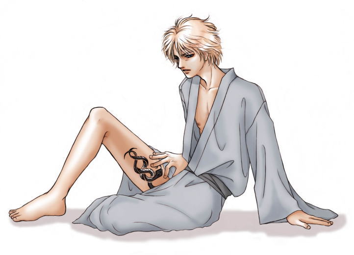 「あれは満月の夜だったんだ」そう…ティーダは語り始めた。 青白い月が夜空に浮かんだ夜。 離れで寝ていたら、誰かに呼ばれたような気がしていきなり目が覚めた。 生き物の気配すら無いような真夜中。障子ごしに声が直接頭に届いて、いつもなら寝入ったら朝まで目が覚めない自分だったのに、唐突に起きてしまった。 「誰かに起こされたのか?」 アーロンがティーダの真向かいに座り、そう尋ねる。 その問いかけに、ティーダが首を振る。 「…側に人がいた気配は無かった。頭の中から声がしたような感じだったんだ」 アーロンの問いかけにティーダは答え、窺うような目つきで彼を見上げる。 「これって…変?」 「いや、確かめたかっただけだ。すまん、話を続けてくれ」 「うん…」 あの時の自分はまるで自分じゃないみたいだったんだ…と、ティーダは話を続ける。 まるで魅入られたみたいにふらふらと障子を開け、そのまま裸足で庭へ降りていった。 外の景色も…いつもと違っていた。 毎日見ていた庭なはずなのに生気を無くし、息を潜め、凍り付いたような景色に変わっていた。 虫の声も、木々のざわめきも無くて、何もかもこの世に自分一人だけしか動いていないようなそんな雰囲気だったんだ。 その間もずっと声がしていた。 …ここへお出で。 …私の元へお出で、と。 呼ばれるままに行ったら…櫻の木の下に、男が一人立っていたんだ。 「男が?知っている奴か?」 アーロンが問いかける。 「ううん」 ティーダが首を振る。 「今まで会ったことも、見たことも無い奴だった。それに…」 アーロンの問いかけにティーダを瞳を宙に浮かせ、記憶の中の男の姿を思い出そうとする。 「それにとても変わった格好をしていたんだ。髪がこう…固まってて変な髪型をしていたし、服装も今まで見たことが無いような奇妙な服を着ていた。胸にも何だか…入れ墨、みたいなものが入ってた」 入れ墨…と言う言葉をティーダは言いにくそうにはきだしていた。 それこそが今、ティーダが直面している問題の根元そのものだったのだから。 アーロンがティーダを促す。 「そいつはお前に何て言ったんだ」 「あいつは…」 その男は櫻の木の下でティーダを手招きして、現れたティーダの手を取って自分の方へと招き寄せた。 (ああ…やっと見つけた。ずっと私の伴侶に相応しい者を探していたんだ。待っていたかいがあったな。君は…美しいよ。その顔も身体も何もかも、私好みだ。やっと見つけた。君を…君こそが私の伴侶に相応しい) 彼はそう言って笑みを浮かべ、おもむろにティーダを抱き寄せようとした。 (ちょ…っと待てよ!いきなり人の庭に現れて、あんた何言ってんだ?何で男の俺があんたの伴侶なんかにならなきゃならないんだ?馬鹿な事言ってんじゃねぇよ。そもそもあんた、いったい何ものなんだ?) 訝しむティーダに、男が悠然とした笑みを浮かべる。 (私の正体なんか、どうでもいいだろう?大事なのは、気持ちなのだから。色んな女や少年を見てきたよ。でも、君ほどに私好みなのはいなかったよ。ああ…綺麗な肌だね。今すぐにでも吸い付きたいくらいだ) そう言って男は好色そうな目を隠そうともせずに、ティーダの全身を舐め回す。 夜着を身にまとってはいるのだが、まるで裸にでもされているような感触に襲われて、思わずティーダははだけていた胸元をあわせていた。 (気持ち悪い事言うなよ。あんた、どっか変なんじゃないのか?) あからさまに軽蔑の眼差しを向けるティーダに、男は動じもせずに微笑み続ける。 (その気の強さも愛おしいくらいだよ。そんな気の強い君を夜具の中で思う様、組み敷いてみたいね。さぞや淫らな光景だろう) ティーダの拒絶の言葉なぞまるで耳に入っていないかのように淫らな言葉を男ははき続け、さらに彼の腰に手を回そうとする。そんな男の手から身をよじって身体を離し、ティーダは見ず知らずの男を睨み付ける。 (そんな巫山戯た事を言う為に俺をこんな真夜中に起こしたのか?非常識だぜ、あんた。話がそれだけなら、俺は帰るからな) 気丈な態度をとり、ティーダは男に背を向ける。 だが正直なところ、ティーダは彼に得も言われぬ恐れみたいなものを感じていた。 音一つしない静寂な夜。只一人、木の下に立っていた男。奇妙な格好をしてはいたが、感じる違和感はそれだけではなかった。何かが…違うのだ。普通の人間ではない。気配が、纏っている空気が何もかも普通とは違いすぎるのだと。 危険だ。 ティーダの頭の中で警告が鳴る。 この男は危険だ。彼の側にいてはいけない。直ぐにここから離れなくては…と。 内心の動揺を押し殺し、ティーダは男に背を向けて歩き出す。 走り出してしまいたい衝動に駆られてもいるのだが、男に弱みを見せるような気がして殊更にしっかりと足取りを進める。 頭の中では疑問だらけだった。 何もかも分からない事だらけだったが、ティーダの本能が彼と関わり合うことを避けていたのだ。 彼は危険