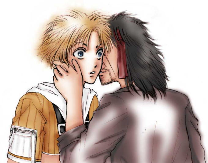 "Wondaerful World"のふくこ様に差し上げたイラストです。 何故ティーダがビックリしているかは、それはぜひともふくこ様のサイトへ行って、SS「指先の鼓動」を見てみましょう。 もう、とっても素敵なの。 読んだ瞬間、この絵の場面がすぐさま頭に浮かび、つい「描いてもいいですか?」とお願いしたしだいなのです。 ふくこ様からお許しの言葉を頂き、調子にのって描いたのです。 ま、相互リンク記念ということもあるのかな。 ただね、どうもうちのジェクトには理性とか、こだわりとかがないらしいです。 思わず、ティーダの口に指を突っ込みたくなりかけたし、服に手が掛かりそうにもなりました。 そーゆう話じゃないっちゅーのに! |