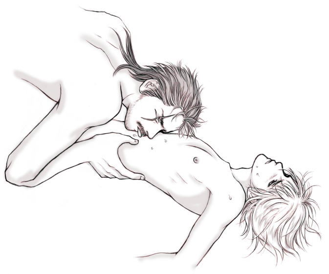 アーロンが上に乗って、悪さを仕掛けているところ。 前戯なのか、やっちゃった後なのかは…さて? どっちとも取れるようならいいかな〜なんちって。 私にしては珍しく(?)二人共服を着て無くて裸で絡んでおります(笑) 着衣Hは好きですが、たまにはこーいうのも宜しいかと。 今回のポイントはティーダのなびいている髪とアーロンの舌…かな? ティーダの気持ちよさげな顔とか、アーロンの手とかを 苦心した覚えがあります。エロ…に見えるといいな〜。 BACK