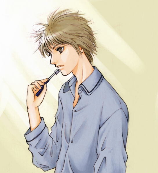 小説、「好きまでの距離感」の主役、中西和正君です。 朝、歯を磨きながら物思いに耽っている図。 普通の男の子。金髪碧眼ではなく、ごく普通の高校生という設定の彼。 まぁ、家庭環境は親の離婚とか色々ありますが。 でもね、普通の子って大好きです。 なんだかさ、エキセントリックな性格とかってBLではありがちな感じがして あんまり食指が動かないのです。 これは多分私がBLを読み過ぎたせいもあるかもと。 BACK