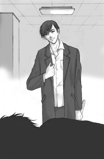 とあるBL小説の一文からイメージを貰って描いた絵。 手前の黒い影の人の方が主人公なのですが、何故かシルエットになっていて、 真正面に立っている男が敵役なのです。 小説を読むときは、いつも頭の中に絵を思い浮かべながら 読んでいます。自分が絵を描くせいもあると思いますが、文章を絵に 置き換えながら読んでいるのです。 だから小説も文章で覚えるのではなくて、絵で覚えているのです。 これって絵描きの性なのかしらね。 BACK