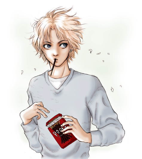 05年、2月のTOP絵のティーダ。 2月と言えば、やはり頭にあったのはヴァレンタイン。 でも、TOPをいかにもそれらしくするのは嫌だったのでちょっと 外してみました。チョコを食べてはいるけど、普通っぽくね。 この絵を描く為に、久々にポッキーを買ってしまいました。 何だか、美味しかった。 BACK
