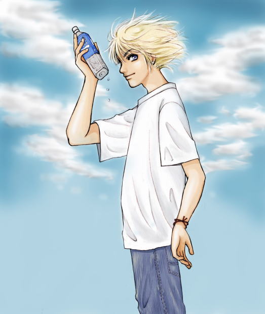 7月のトップ絵のティーダ。爽やかな夏をイメージ。 夏=青い空、白い雲。ついでにポカリスエットが自分の中の夏。 まぁ、スポーツマンにはコーラとかじゃなくて、やっぱスポーツドリンクだよなぁと。 ちなみにティーダは一応未成年っていうことで、お酒ではなくてポカリなのですよ。 これがおっさんズだったら、間違いようもなく生ビール持たせております。 BACK