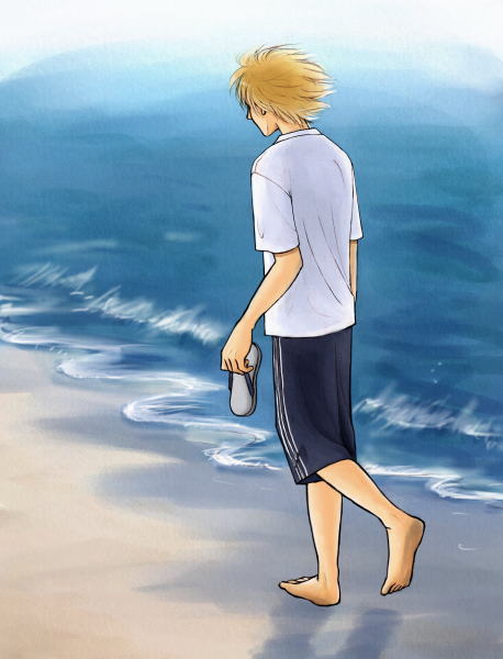 にしても。全身はともかく、海を描くのは難しかったです。波飛沫とか、砂浜のざらついた感覚とかがね。