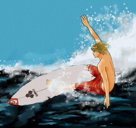 波乗りをしている姿はずっと前から描きたかった一枚。