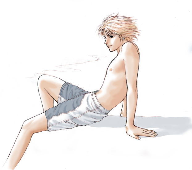 本当ならちゃんと砂浜とか海辺を背景として描かなきゃいけないのだろうけど、ティーダの表情をメインに持っていきたかったので、あえてバックは極力少な目にしてみたのです。
