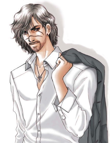 一度描いてみたかったバンダナ無しのジェクト。 そしてちょっとだけお遊びをして、サラリーマン風にもしてみました。 ワイシャツ姿にスーツを持たせてみたりして。 なんとなくジェクトって、シルバーアクセサリーとかが好きそうな 感じがします。だから耳にはピアスも付けちゃった。 ピアス付きのジェクトも描いてみたかったのよね。 しかし…こんなサラリーマンっていないよなぁ。 少なくとも日本じゃあ、無理だと思う。 BACK