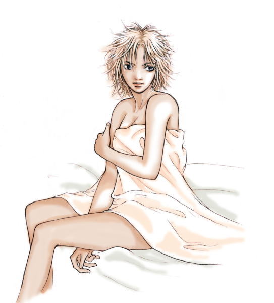 | 突然、胸が描きたくなってしまいました。 男のさ、真っ平らな胸ばかり描いているとどうにも物足りなくなってしようがなくなってしまったのです。 柔らかい体の線とかさ、丸い胸とか胸とか胸とか…が描きたいんですぅ〜。 潤んだ瞳とか、長い髪の毛なんていいよなぁ。 綺麗な子が肌を露わにしてるのって、好きだよ。 で、裸にシーツ。 あんまり趣味に走るのも何なんで、せめてティーダの女の子バージョンにしてみました。 …やっぱ、いいや女の子って。描いていて楽しいよ。 |