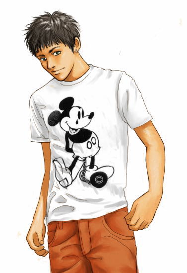 6月のトップはポップな感じで仕上げてみました。 ポーズとか、ファッションもあんまり凝ったイラストではないのですが、 今回はTシャツの模様を少しばかり、遊んでみました。 前にブログでも言ったのですが、描き上げてから陸に似てるなぁと感じてしまいました。 狙って描き上げたわけではないのですがね。 うちの陸はこんなTシャツ着るかしら? 作者にも疑問です。 BACK