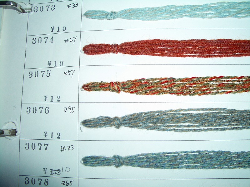 色の違った細い毛糸を何本もより合わせて作っています。主に梳毛糸を使っていますので、タッチは滑らかです。