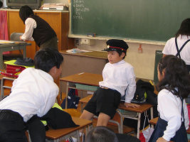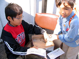 小学校の参観日でした。全くんは工作の時間で、おかあさんと一緒に共同制作です。からくり立体パズルができて、本人は大喜びです。啓くんは休み時間の様子です。今日が参観日だったので、明日が代休になります。