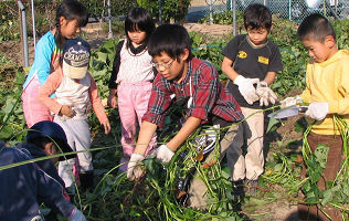 午前中、倉敷自然史博物館祭りに出かけました(おとうさんは、研究所紹介コーナーの当番)。左上の写真はガーネット原石探しのアトラクションをやっているところです。下二枚は、午後に全くんの元クラスメートのおばあちゃんの畑におよばれして芋掘りをしているところです。参加した子どもたちの中では啓くんが最年長で大いに力を発揮してくれました。帰宅してから、おかあさんに蒸してもらったサツマイモを自力でつぶして牛乳をいれて、スウィートポテトもどき?(啓くん、創くんが好き)も作った啓くんです。