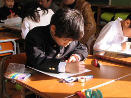 昨日の参観の様子です。全くんは帰りの準備の写真です。 今夜はテレビで日本シリーズの第4戦があって、啓くんは中日を応援していました。いつもは野球中継には興味を示さない啓くんなので、不思議に思っていると、理由を教えてくれました。担任の先生(写真左)が中日のファンで、中日が優勝したら宿題がなくなる、という約束があるんだそうです。応援のかいがあって(?)今晩中日が優勝を決めたので、「明日は宿題がない!」と喜んだ啓くんでした。