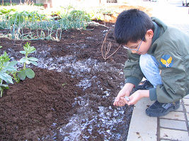 無事に茅ヶ崎へ行って、帰ってきました。写真左は往路の電車の中の様子です。写真中はおばあちゃん宅での記念撮影です。暮れにはおばあちゃんの家の掃除を手伝ってくれたり、醤油をこぼしたりの子供たちです。「乾いた濡れ雑巾ちょうだい」と、おもしろい間違いも言ってくれました。写真右は茅ヶ崎滞在最終日に近くの畑で霜柱を興味津々で見ている啓くんです。大晦日の夜から数日間冷え込んで、倉敷では見たこともないような大きな霜柱ができていました。
