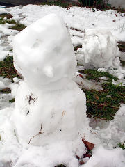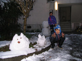 昨晩は結構雪が降って5-6cm積もりました。子供たちは大喜びで早起きをして雪だるまを作りました。朝6時半ぐらいでまだ薄暗い頃でした。登校してから小学校は2年生以上が雪遊びをしたそうです。1年生は遊ばせてもらえず文句を言って帰ってきました。