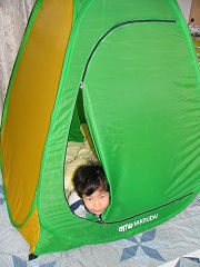 全くんはテントで寝たいと言うことで、急遽ウィンターキャンプになりました(写真)。居間にちびっ子テントを出したということです。