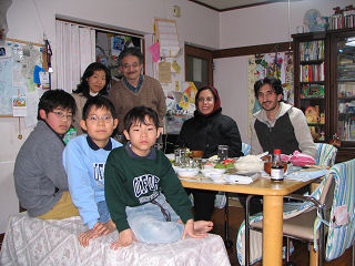 昨晩の雪は朝方に雨に変わりましたが、雪だるまを作ることができるくらいの雪は積もりました。写真(左)は全くんの作品です。夕方は今月末で帰国するイラン人の大学院生(特別研究学生)と奥さんを我が家に招いて夕食をしました(右)。