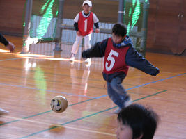 小学校の体育館でPTAの協力でフットサルを楽しみました。午前中のスポーツのあと参加者はお昼にうどんをいただきました。全くん、啓くんとも赤チームです。このチームは低学年の子が多くて他チームとの対戦では苦戦していましたが、子どもたちは点数は気にせずに楽しんでいました。