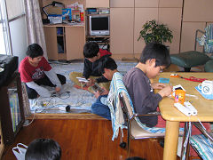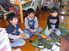 ハシモトくんたちやシュウちゃんが遊びに来て、一緒にお昼も食べて楽しく過ごしました。遊びの多くはTVにつないで対戦するかパーソナルタイプでのゲームです(写真)。外で鬼ごっこも少しはしました。