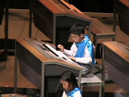 午前中の教会学校では、年度最後の日曜日なので子どもたちは精勤賞をいただきました。残念ながら皆勤賞になれなかったのは、学校の授業参観日があったからです。午後は昨日の全くんに続き、啓くんのステージです。難しい曲でしたが、ちゃんとできました。写真右は発表会の最後に全演奏者がステージに上がって「夕焼けの空を飛べたら」を歌うところです。啓くんがどこにいるか、写真左のステージ衣装をヒントに見つかるでしょうか?ちょっと小さすぎて誰が誰だかわかりませんね。