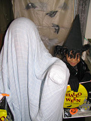 昨晩ハロウィーンの啓くん(左)、全くんです。誰だかわかりませんね。お化けになった啓くんの方も、周りがよく見えないとのことでした。今日は午前中に習字に行き、午後は仲良し3人組が集まりました(ミッくんは岡山に戻ってきています)。