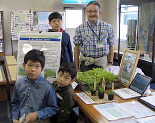 自然史博物館祭りでおとうさんが研究所の屋上緑化を説明しました。子どもたちも来てくれました。このあと啓くんは折り紙コーナーで「豪華カブト」を何回も折って作り方をマスターしました。