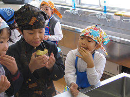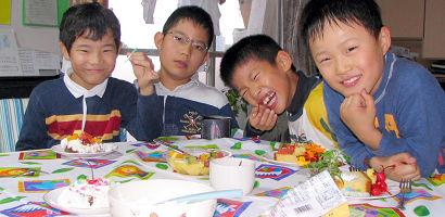 一昨日のバザーで買ったクッキーが食卓においてありましたが、おかあさんの分を長男がまちがって食べてしまいました。おかあさんが抗議したら創くんは自分のクッキー袋のクッキーを返してくれました。