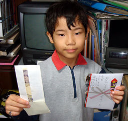 今日は全くんのお誕生日です。8歳になりました!バザーから帰宅後に、2人のおばあちゃんから預かっていた誕生日祝いをおかあさんから渡してもらいました(右:バザー前には渡しません)。