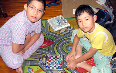 火曜日に遊び足りなかったということで、子どもたちはハシモト家に今日午後あつまって遊びました。火曜日は野外でしたが、今日はゲーム中心です(チャンバラしていた子どもたちもいました)。ここ数日暑くて、夕方に室温が30度を超えていましたのでクーラーをかけました。
