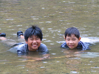 全くん、啓くんのお友だち関係の5家族が砂川公園にあつまりました。全くんは川で泳いで大はしゃぎです。バーベキューサイトで豚汁や鳥唐揚げなどをつくってお昼ごはんです。天候は、終了時までどうにか持ちました。