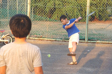 中学生は普通に登校していきましたが、小学生は先週土曜日(運動会)の代休で今日もお休みです。ゆっくり過ごして夕方は級友のシュウちゃんたちとバトミントンをした全くんです。ずいぶんバトミントンも上手にできるようになりましたが、たまたま打ち損じた時のが写真に収まってしまいました。今日は数日ぶりに暑くなり、運動した子どもたちはずいぶん汗をかきました。