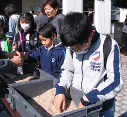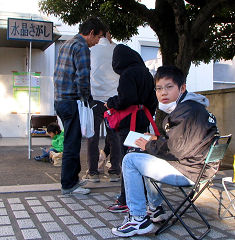文化の日です。近くの倉敷市立自然史博物館で「博物館祭り」が開かれました。「水晶さがし」に参加したくて、整理券を求めて朝7時半から並んだ子どもたちです。整理券をもらってから一度家に戻り、イベント開始時刻になってから「水晶さがし」に出かけました。全くんはその時、整理券を家に忘れて一度取りに戻り、再度博物館に走っていく途中に今度は整理券を落としたり、とドタバタでしたが、どうにか水晶をゲットすることができました。