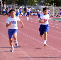 倉敷市内の小学校6年生が集まる陸上記録会でした。啓くんは、オープン競技の50m走に出場しました。