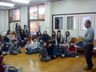 おとうさんが夜7時過ぎに帰宅して玄関をあけると、目の前に浴衣を着た全くんがいてビックリ!夜祭りとか、こんな寒い時期にないよなぁと思って聞くと、学芸会(今月30日)で演じる「村の子ども5」の衣装準備だということです。玄関では、草履代わりに履くビーチサンダルを合わせていたのでした。