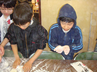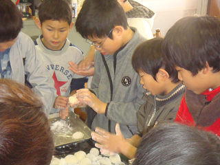 教会のキッズクラブです。賛美をして、牧師先生のお話を聞いて(写真左上)から、餅つきでできたばかりのお餅を丸めてあんこ餅をつくりました。子どもたちが作業中に餅取り粉(小麦粉)を飛ばすので、フラッシュをつけると空中の粉に反射して、たくさんの白いシミみたいに写ります(写真右上)。きな粉餅もあります。昨年好評だった、砂糖醤油につけてからフライパンで少し焼いて海苔をつけたお餅(右下)など、いろいろいただきました。初めて教会に来てくれた小学生男子もいて、子どもたちもすぐに馴染んでいました。