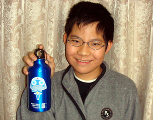 ほとんど忘れていたプレゼント応募に啓くんが当選して、景品が送られてきました。ケロロ軍曹のキャンペーングッズで、ドロロを描いたアルミボトルです。9月締め切りの応募でやっと今頃届きました。同封の挨拶状には「お届けが大変遅くなりました事深くお詫びします。」と書かれていました。またそのあとに「本品は読者プレゼント・・・です。ネットオークション、フリーマーケット、中古品販売店等で販売することはご遠慮ください。」とも書かれていました。確かに今はそういう時代ですよね。