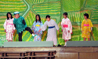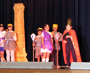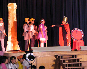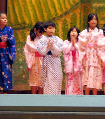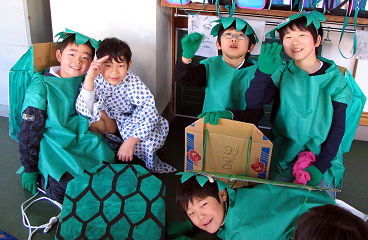 学芸発表会でした。3年生は「河童」の劇で、舞台が済んだ全くんは複数キャストの「かっぱ」たちといっしょに写真に収まりました(中)。6年生の「走れメロス」も上手にできていました。