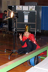 今週土曜日は学芸発表会です。今日は体育館で学年ごとの舞台練習があって、おかあさんが学校新聞の取材に出かけました。啓くんは自分の演技の他に出番でない時は照明係もします。