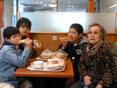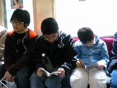 昨日の様子をおかあさんが撮ったものです。電車の中ではほとんど本を読んでいるかゲームをしている啓くん全くんです(長男は音楽を聴いてます)。平塚で途中下車して、おばあちゃん(おとうさん方)にご挨拶しました。年末年始には帰省できなかったですからね。