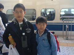 おかあさんが小田原まで付き添って、啓くん、全くんを新幹線に乗せました。おとうさんが岡山駅で出迎えると、予定通りの時刻に改札口に出てきた子供たちです。無事に着いたわけですが、本人たちに聞いてみると「危なかった」そうです。実は小田原で乗った最初の「ひかり」から名古屋駅で「のぞみ」に乗り換えるのですが、あやうく最初の「ひかり」を降りそびれそうだったとのことです。全くんはトイレに行っていたり、啓くんも気づかないうちに「ひかり」は名古屋駅に接近していたようで、「あと10秒遅かったら降りれんかった」との啓くんの弁でした。まぁ啓くんはちょっと本に夢中になってたんでしょうね。